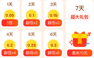首日获赠0.1积分,连续签到以每天0.05积分递增;30天为一个周期,连续签到30天可累计获得24.75积分=24.75元;