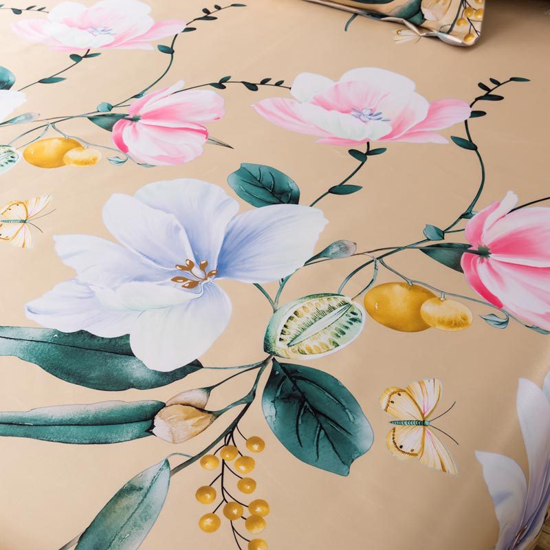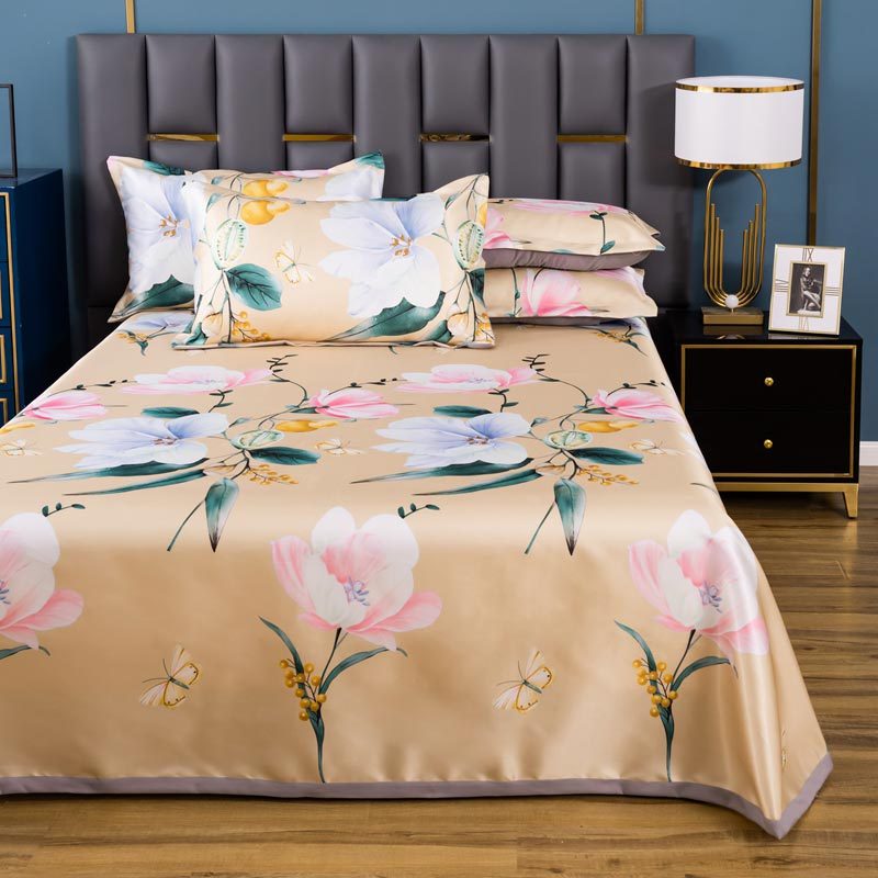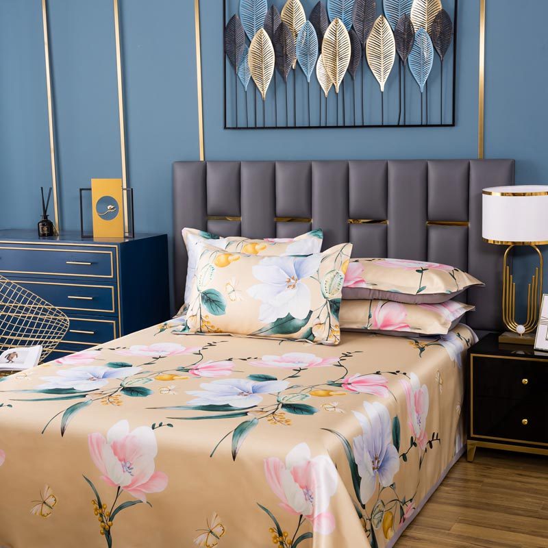 明超家纺 冰丝印花软凉席透气三件套·花意漫漫黄