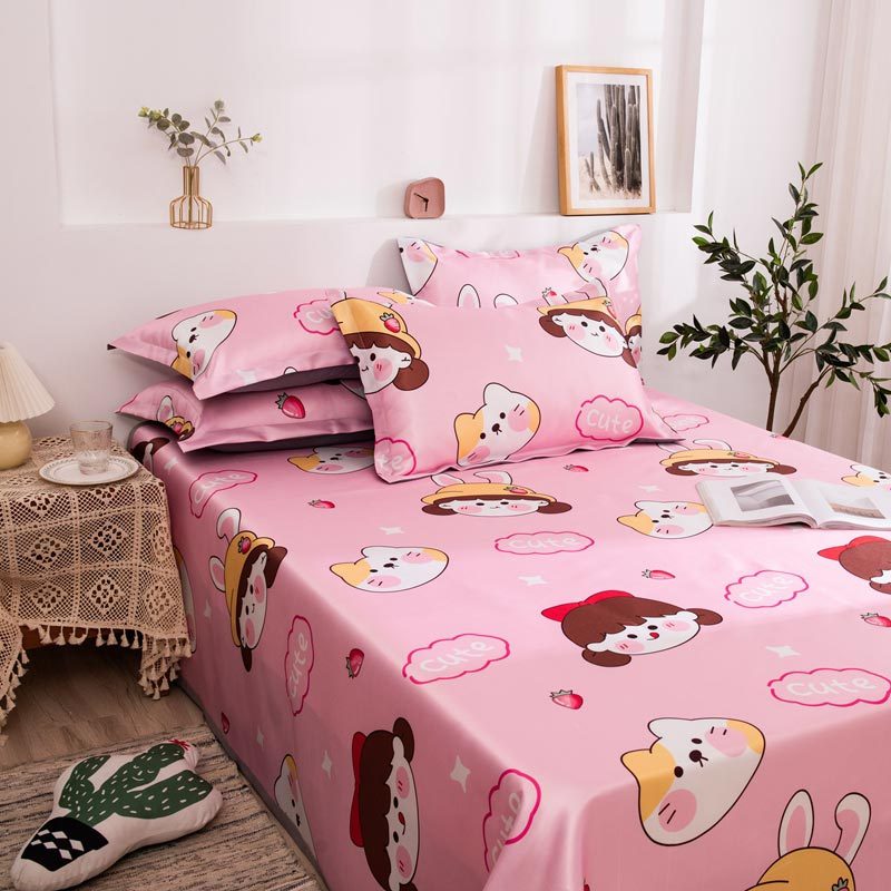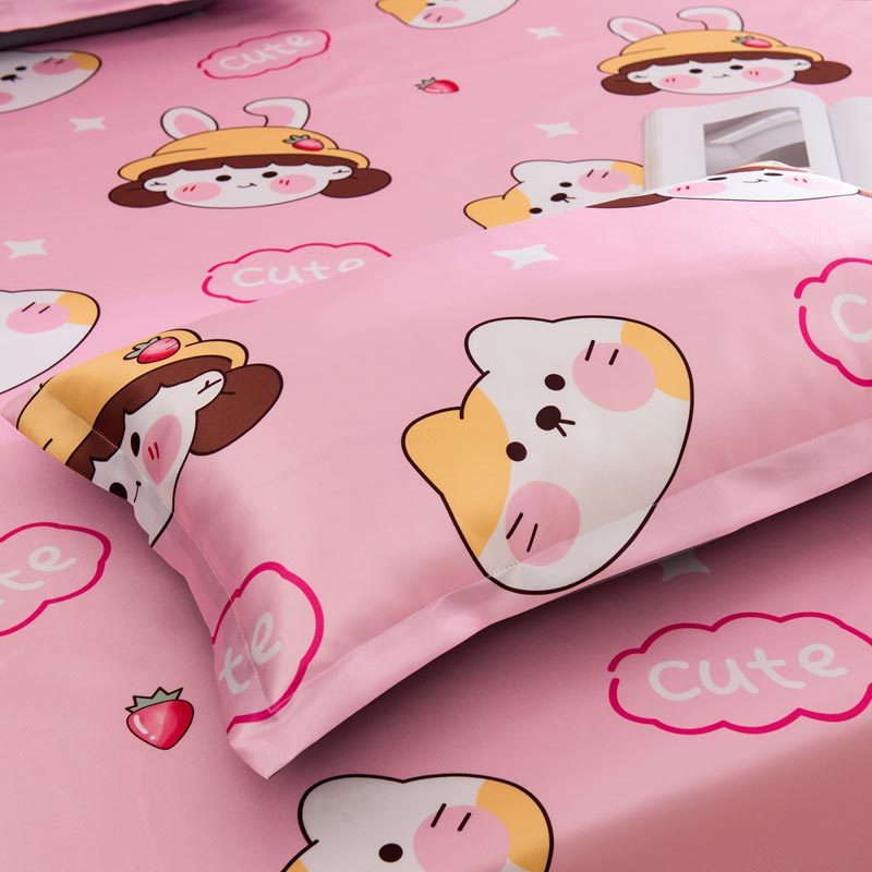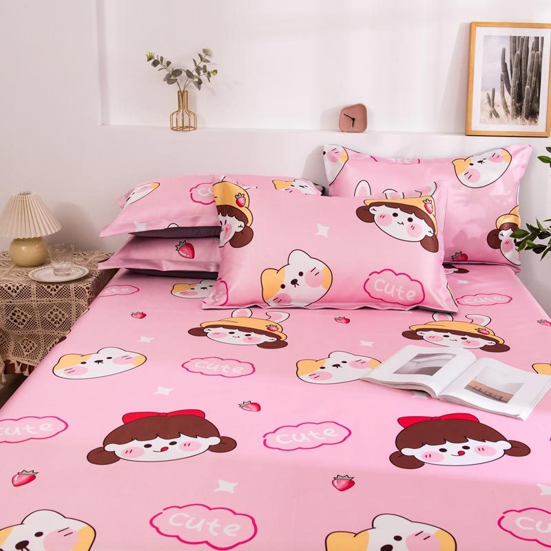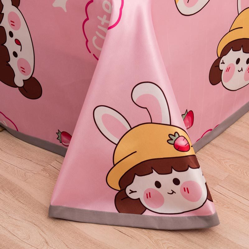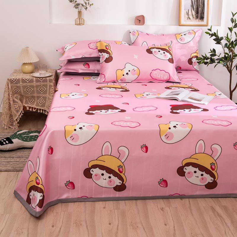 明超家纺 冰丝印花软凉席透气三件套·甜心女孩粉