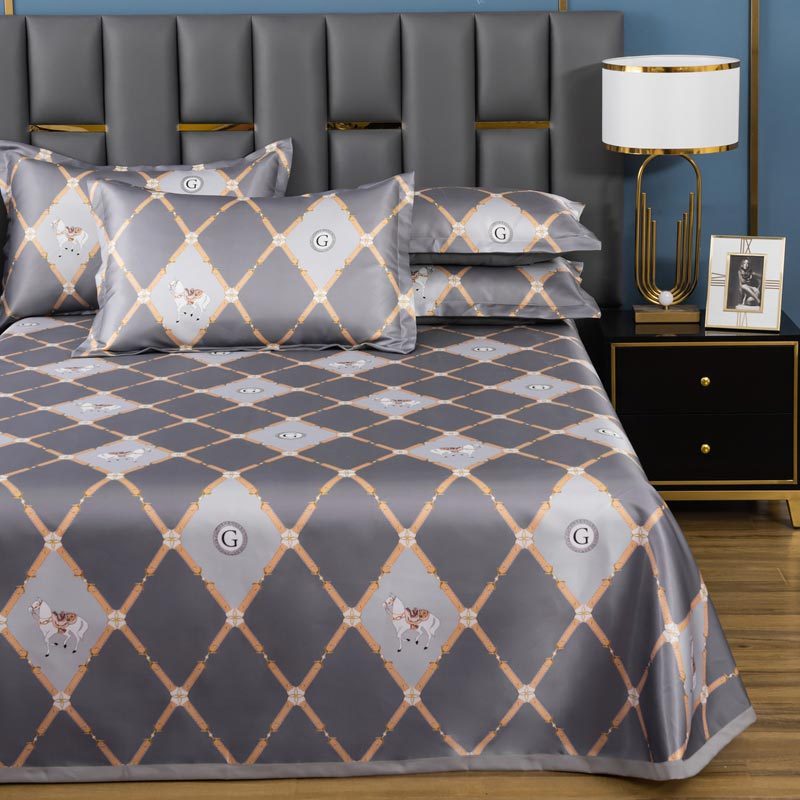 明超家纺 冰丝印花软凉席透气三件套·品格物语灰