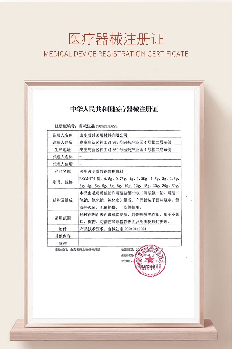 博科医用透明质酸钠修护敷料 1/盒 4g*10支/盒 液体