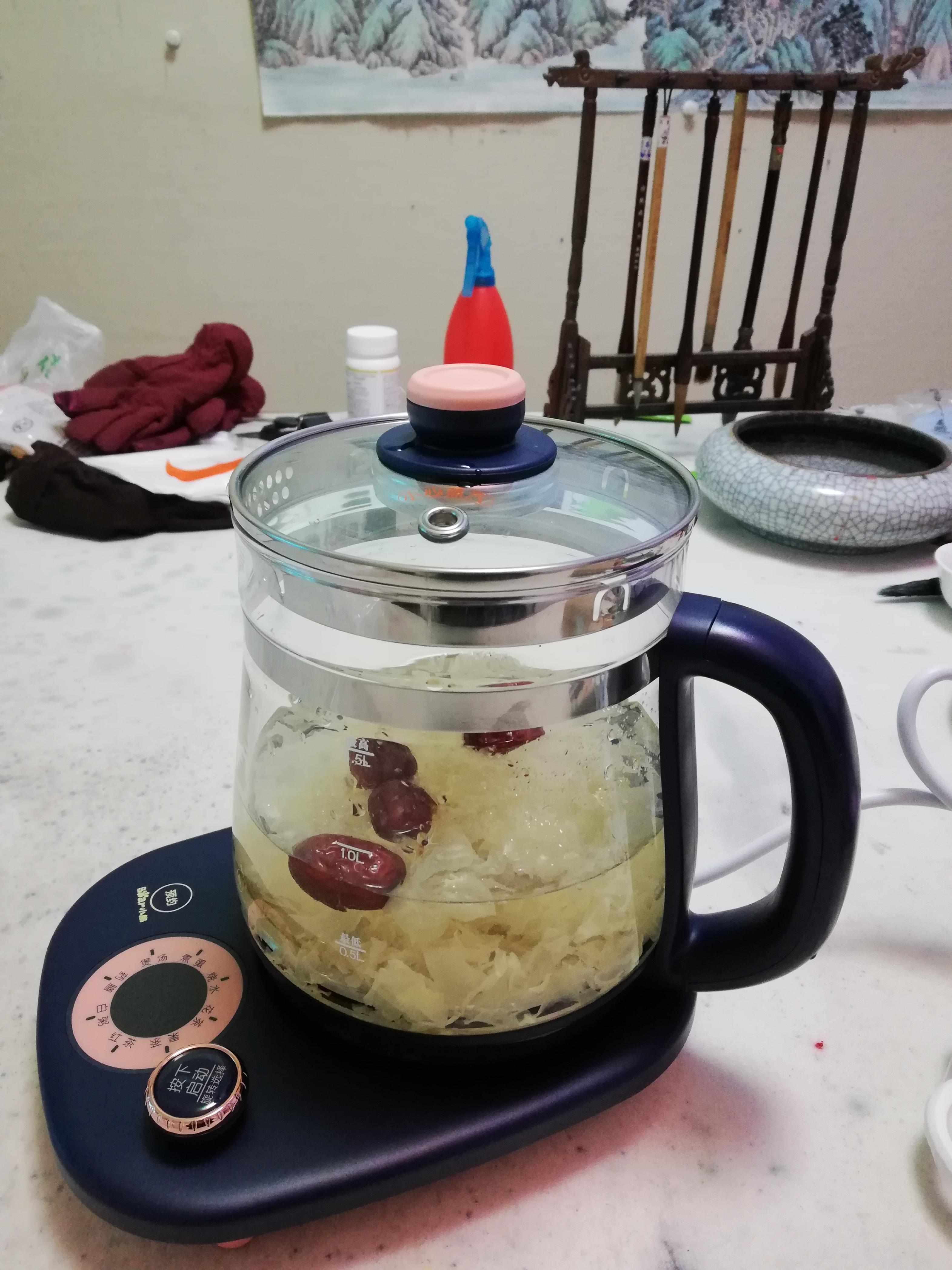 看了无数次,终于在双十二下手了,超级划算。瞧这颜值,好高,功能多,还有蒸蛋架。可以买咯。泡上了银耳,打算银耳红枣汤做起来。