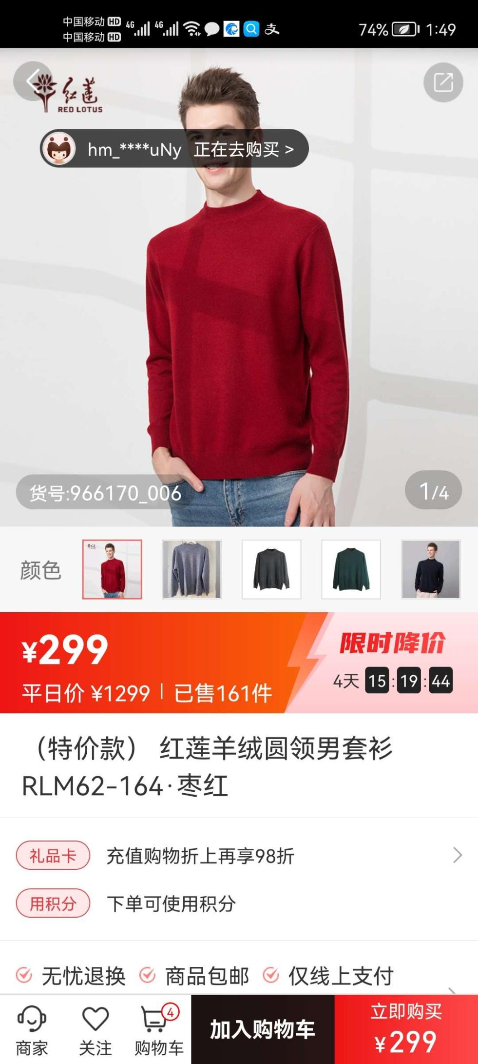 红莲羊绒衫,不用多介绍,术业有专攻,这个品牌就做这一个事情,一做就是几十年,一定是有保障的。