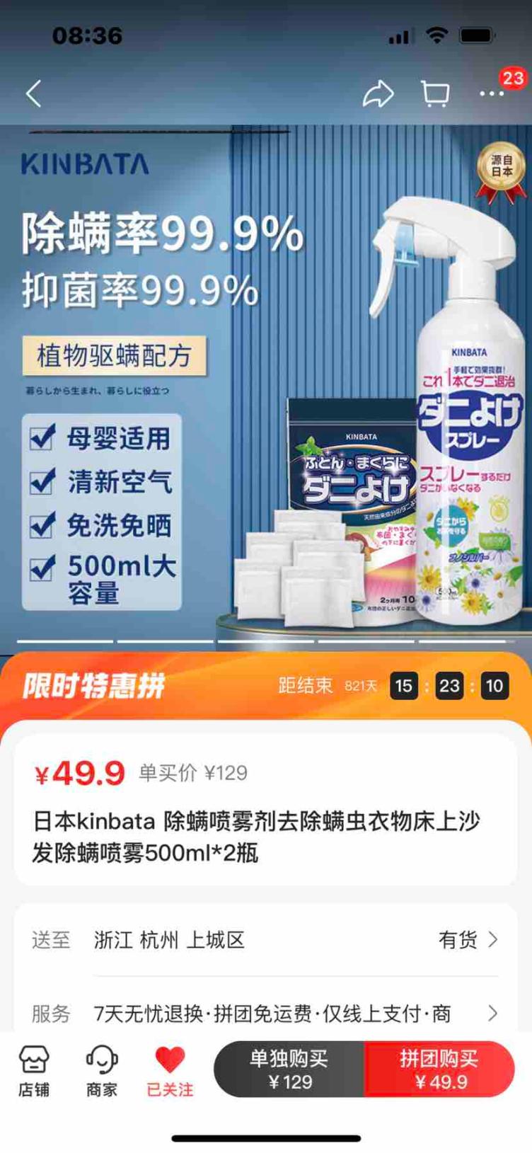 日本Kinbata除螨喷雾剂收到,物流送货很快,商品还没有使用,待用后再追加评价。