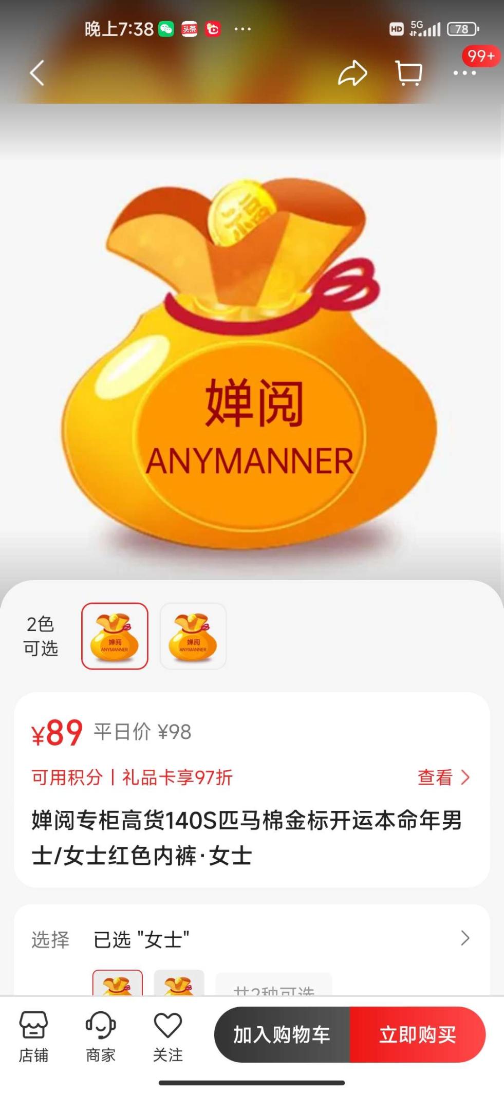 婵阅红色女士内裤质量很好,尺寸合适,喜庆,喜欢。