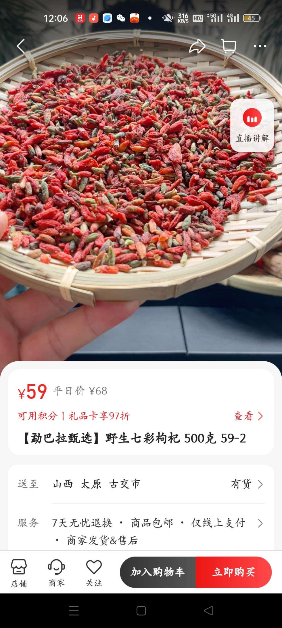在勐巴拉甄直播间购买的野生七彩枸杞很好