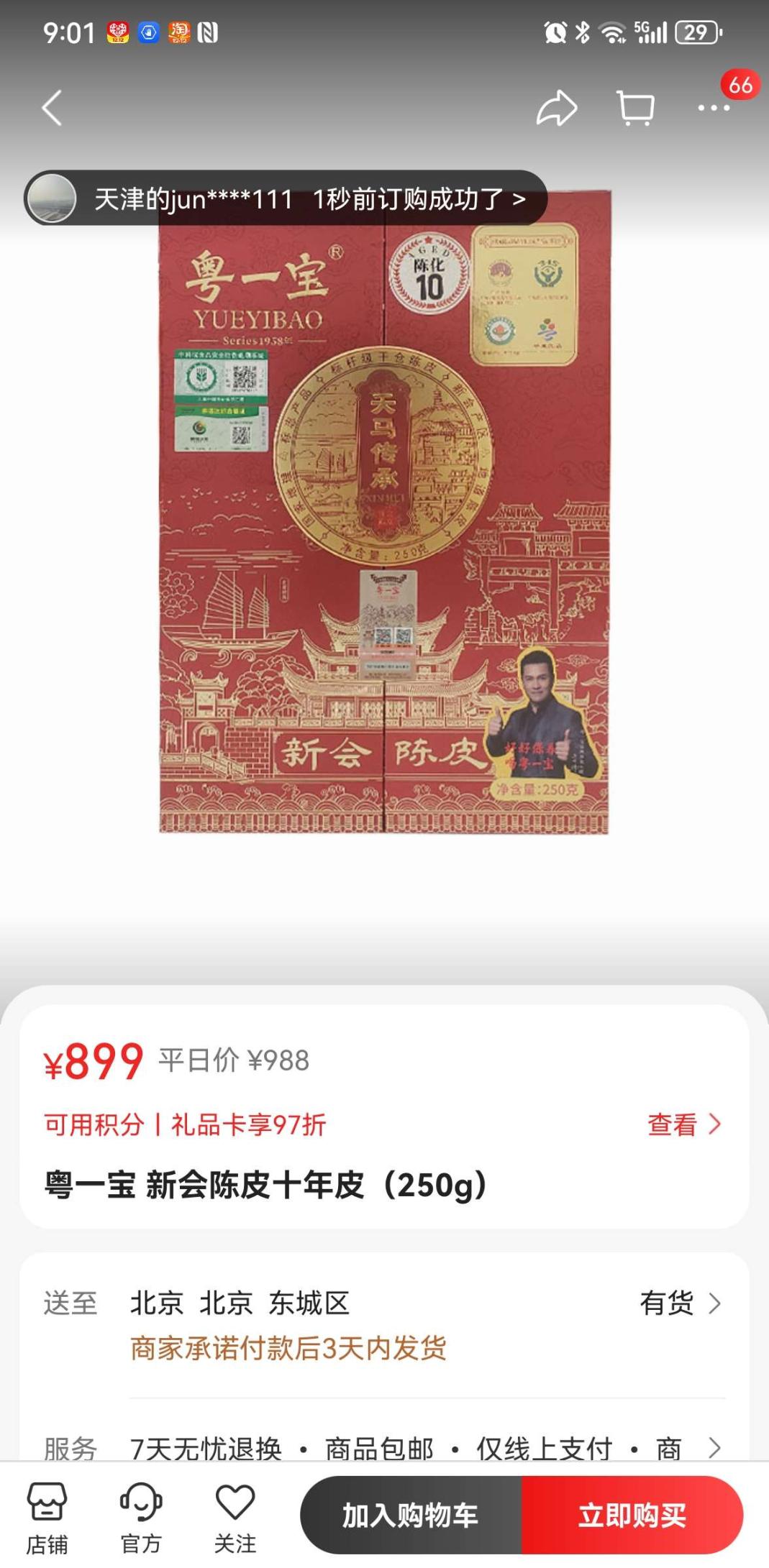 直播间下单粤一宝新会陈皮十年皮,礼盒包装,没打开,还送了两罐50克的,很喜欢