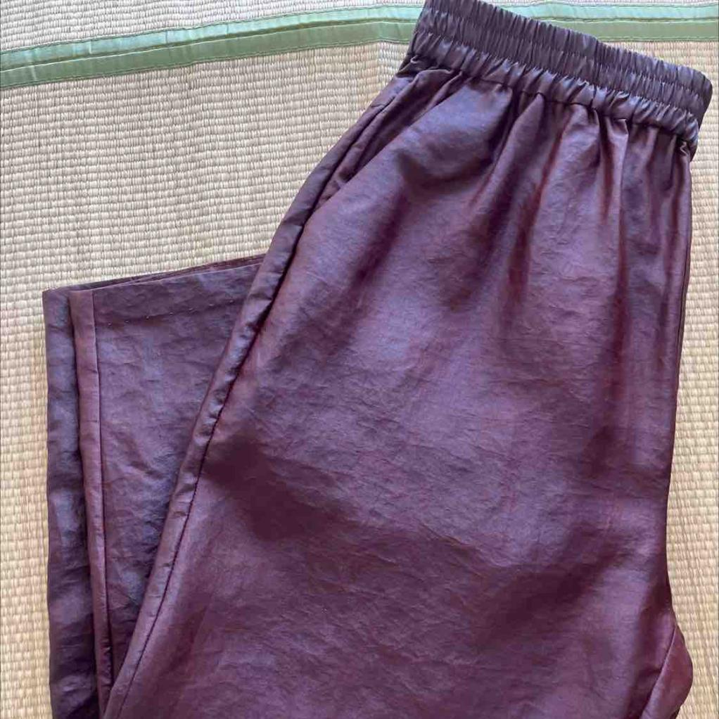 手工香云纱小脚裤收到了,跟想象中的一样没有让人失望。就是小贵,用积分兑换了一些划算一些。