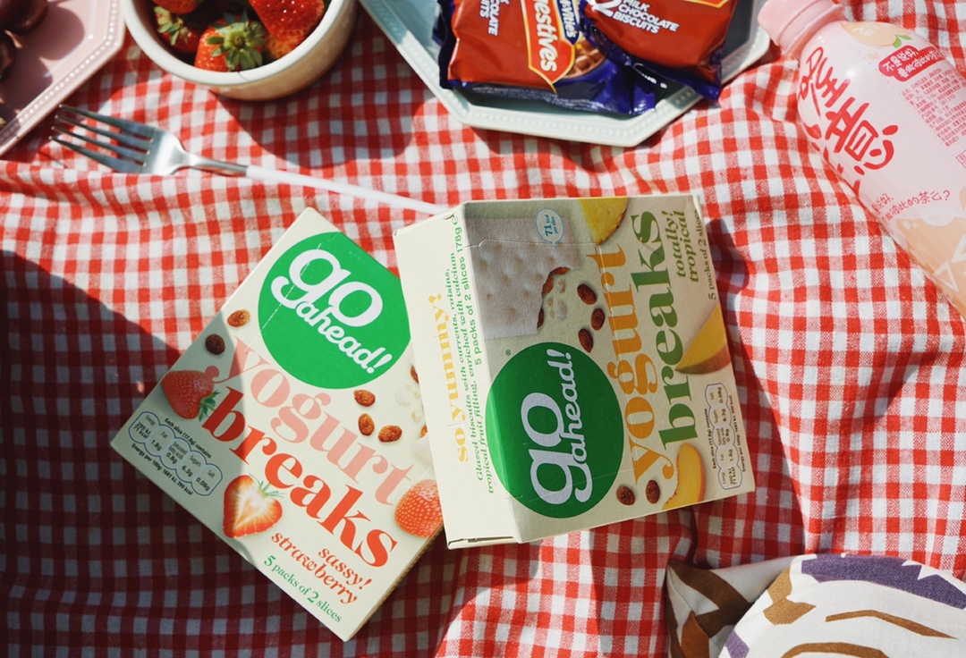 英国进口 go ahead 果悠萃酸奶饼干 1⃣️一开始买它吃也是因为他在英国真的超级火 时尚潮人都在吃,而且在英国年销售两亿的饼干!所以当然要试一下咯~ 还有就是包装好看,高颜值包装是仙女们的首选要素之一,包装可以当下午茶的背景图了,随便拍拍就可以PO圈啦~ 2⃣️再说说口感吧 饼干外层是酸奶涂层,货真价实 酸奶浓郁到吃完都要舔手指,嘻嘻嘻 饼干是小麦制成,香喷喷的口感比较酥脆,然后中间就是夹心啦,口味很多,多种选择,酸奶+小麦+果干 酸奶可口,酸甜程度算是适中,不会太腻,完美搭配哦,而且夹心里面的果肉都是一颗颗真实的果干,还蛮实在的~ 3⃣️关键是低热量!!!不需要担心热量高发胖的问题,每片据说只要71卡路里~ 4⃣️简直是工作、学习、聚餐、下午茶的必备小零食,反正我的嘴巴是根本停不下来~ 5⃣️一盒里面有5包,每包2片,拆包装的时候没忍心,都是先拍了再拆的吃的 总结:推荐五颗星😊 口感:🌟🌟🌟🌟🌟 健康:🌟🌟🌟🌟🌟 包装:🌟🌟🌟🌟🌟