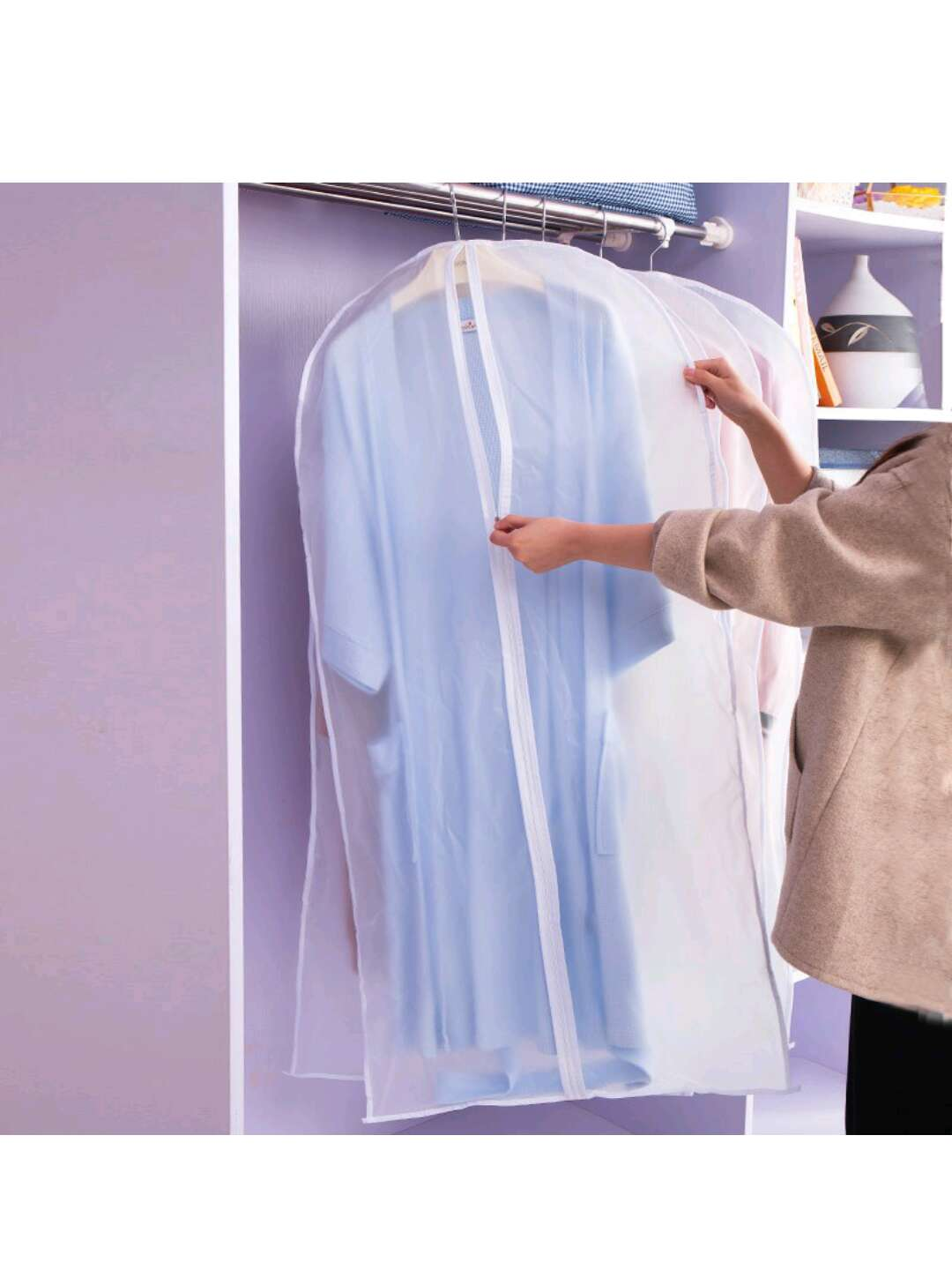 Hello!宝优妮的优妮粉们大家好! BAOYOUNI品牌【收纳好物分享】 很多外套没有办法叠起来,又没有那么多储物空间的朋友,可以和我一样买个顶天立地的衣架挂起来,可最大的缺点就是不防尘,时间长了衣服的肩膀处容易变颜色,衣服也容易有味道,而我们宝优妮衣服防尘罩! ! !简直太好用,分享给我的264个粉丝根据不同型号大小价格会不一-样,请搜索宝优妮旗舰店防尘罩,超级好用,爆款哦 这一款的优点是质量真的超好! ! !不容易变形,装的时候衣架戳到都没有痕迹! ! !