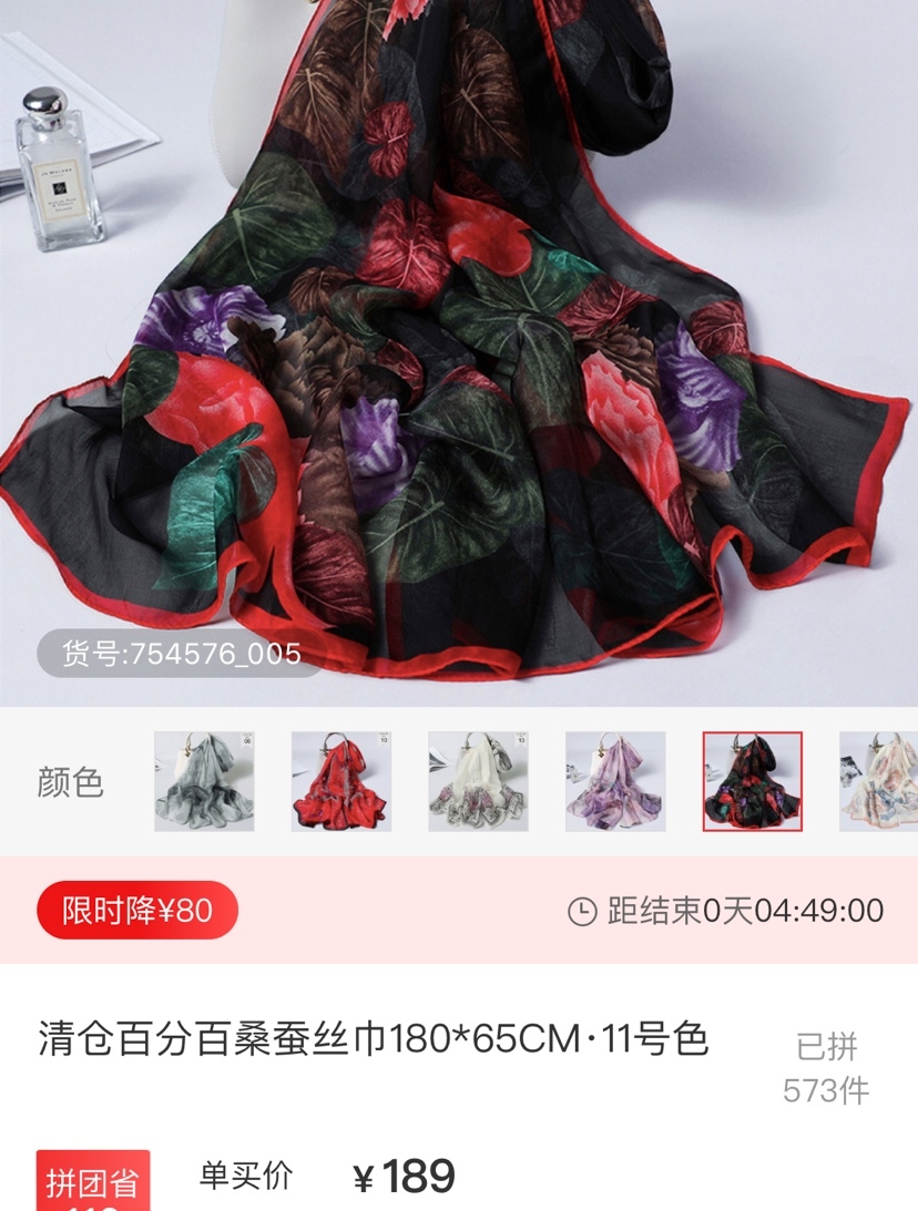 我选的黑底花的 漂亮百搭 相比贵的真丝有点硬 不过也就这个价 可以了