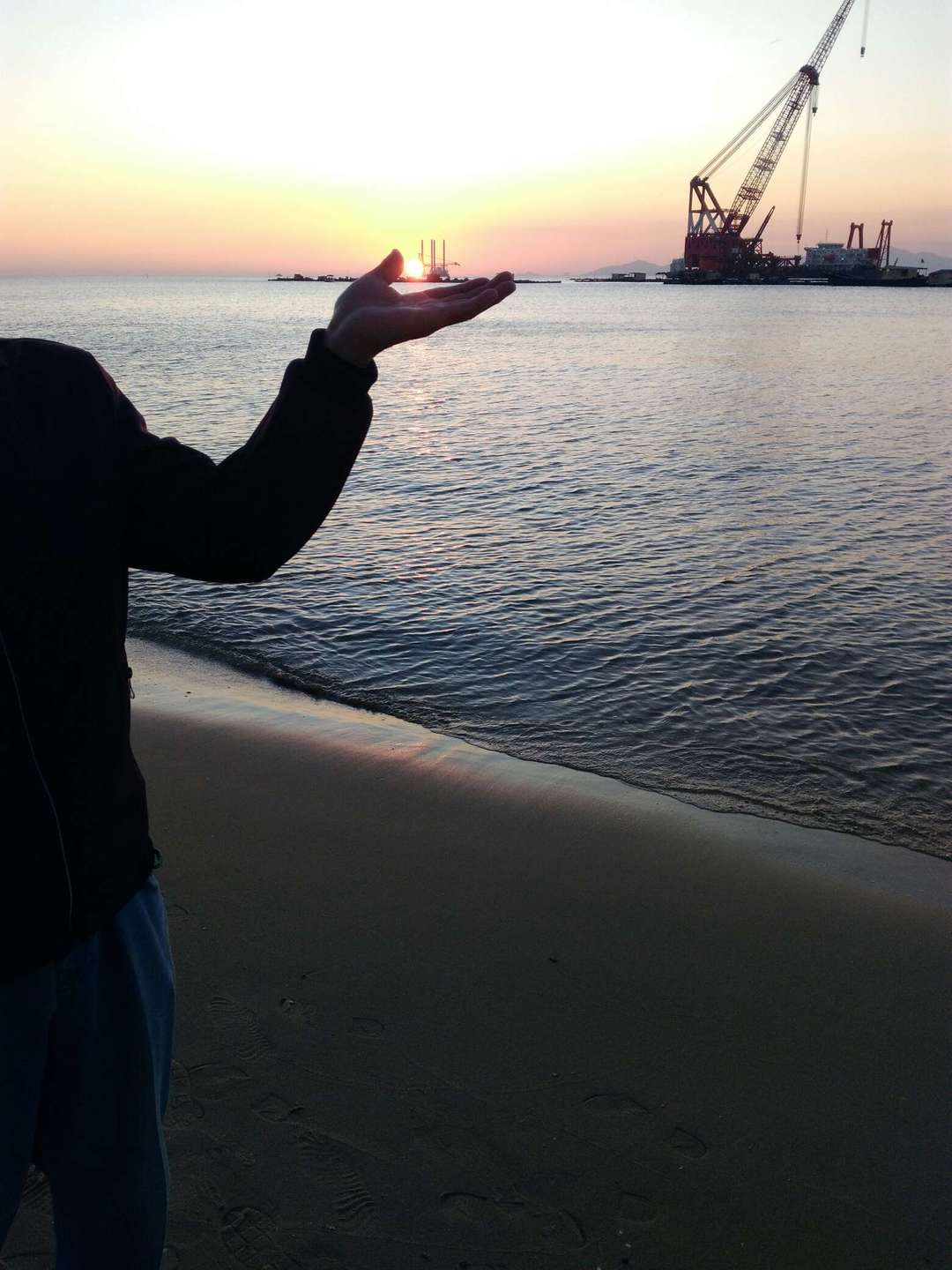 广州湛江马尾岛的落日如画,人是画中景。