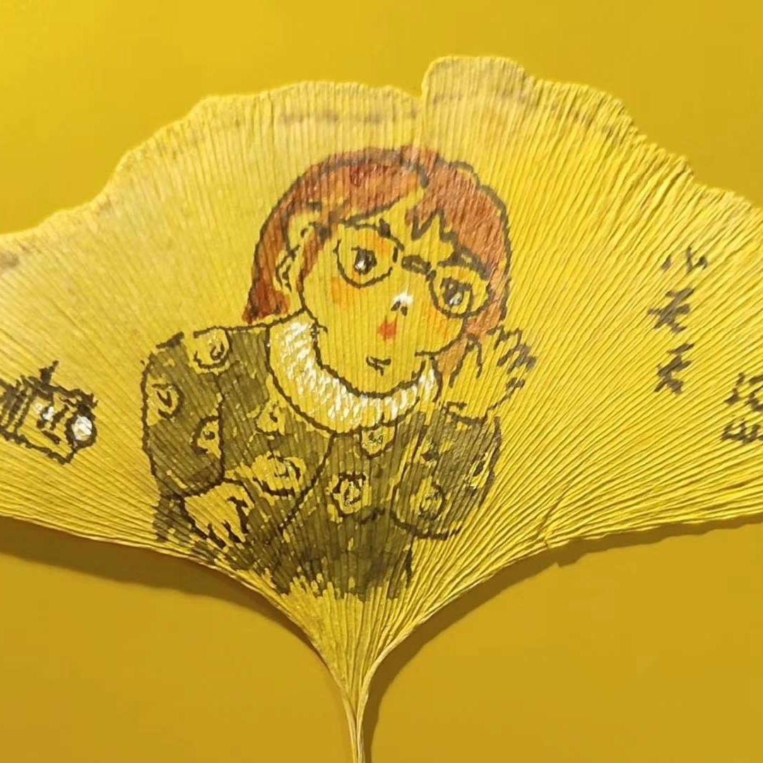 银杏叶上的画