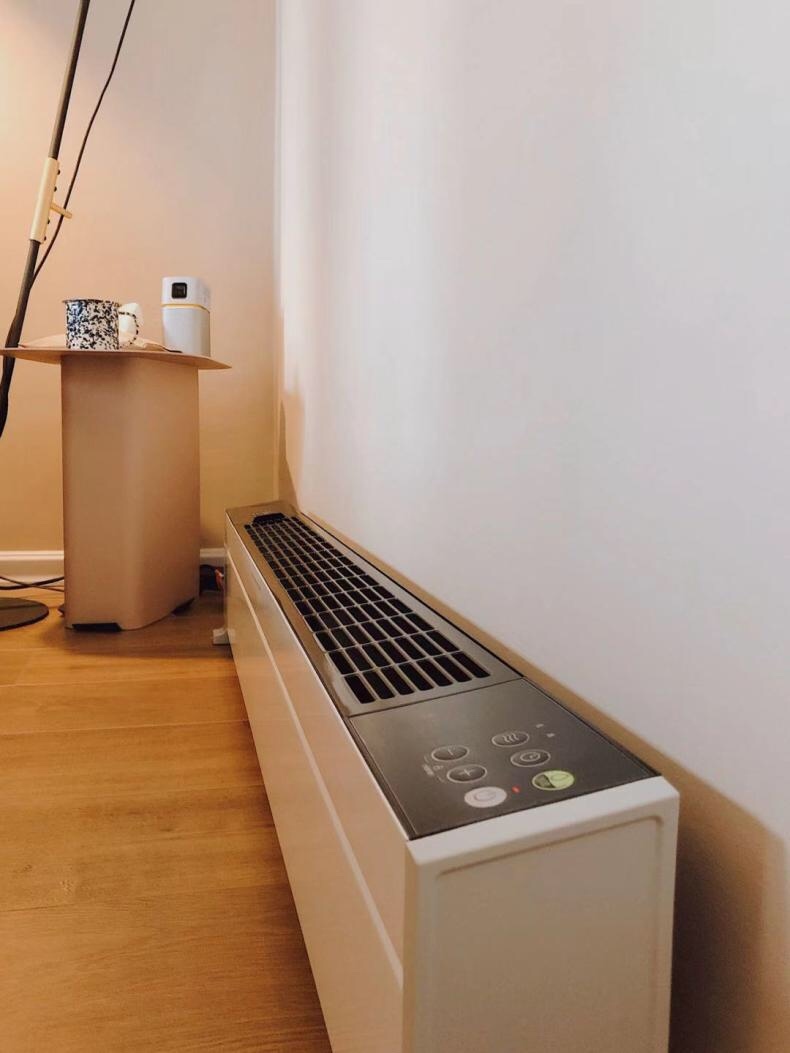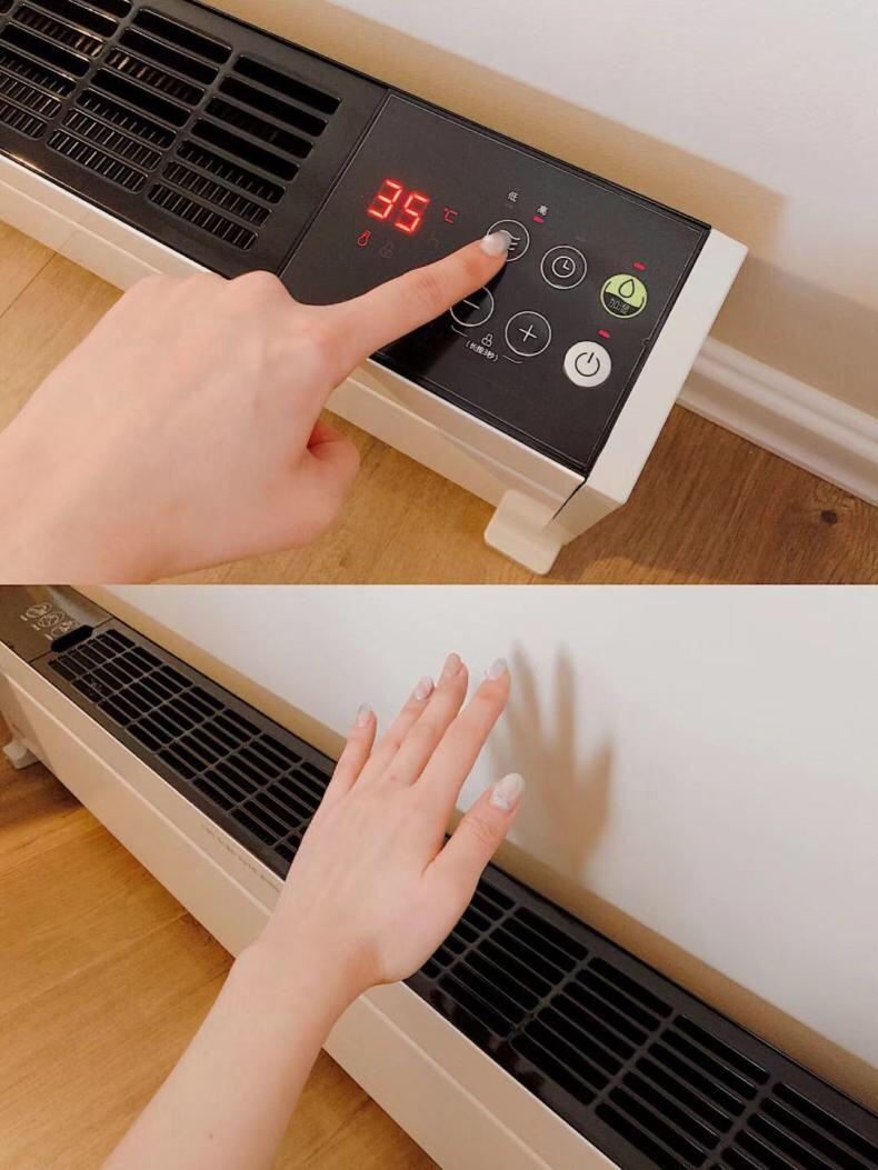 取暖器是黑白百搭色,什么装修都不违和,而且机身非常纤细,大概也就是我手掌的宽度多一点,高度也真的和踢脚线差不多,除了卧室还可以放在沙发边,一点都不占地方,和家人暖暖的聊天看电视,也可以放在阳台用它加速烘干衣服,南方的宝宝是不是很需要☺️
