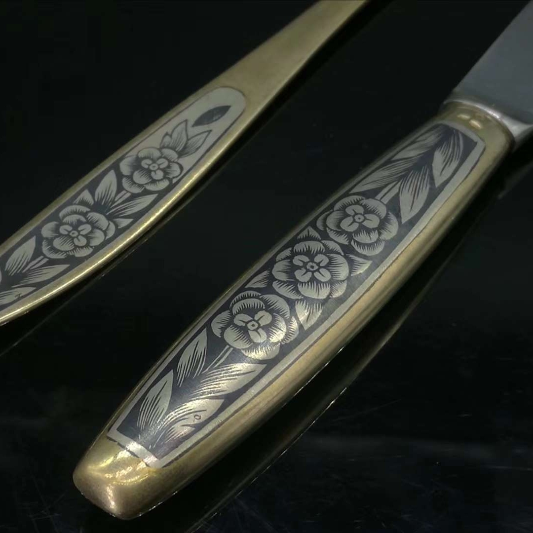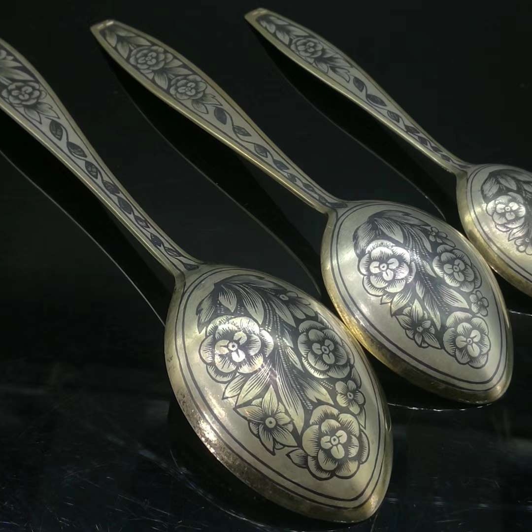俄国Niello工艺875银镀金套装餐具,年代:苏联时期;共五件,重量:246.6g