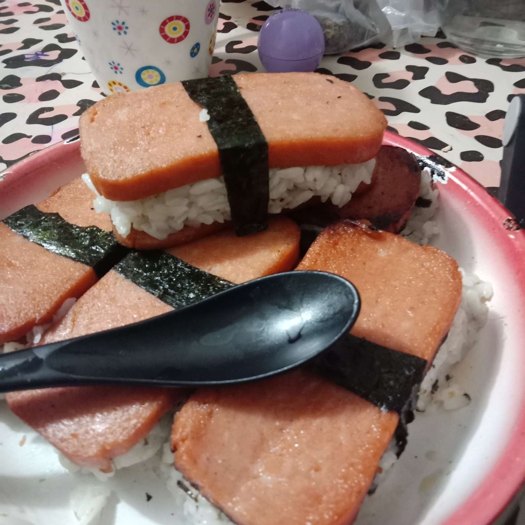 晚上自制的午卢餐肉海苔寿司,夜宵!