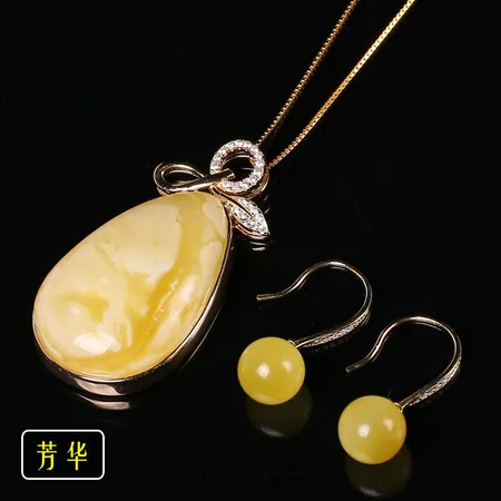 唯丝925银镶嵌天然俄料蜜蜡吊坠买吊坠送项链再送耳环买一送二