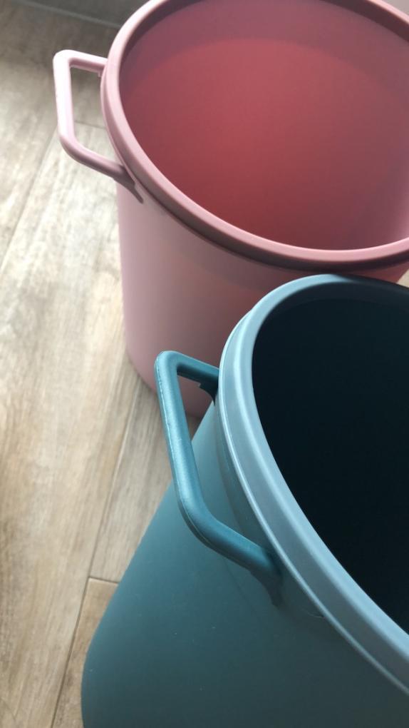 垃圾桶收到了,主要就是冲颜值来的,喜欢!质量比预想的还要好。垃圾桶上有个压圈固定垃圾袋不错,侧面还有个提手。方便!