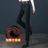 【断码特价】和顺圣加厚绒小直筒牛仔裤2288A·黑色