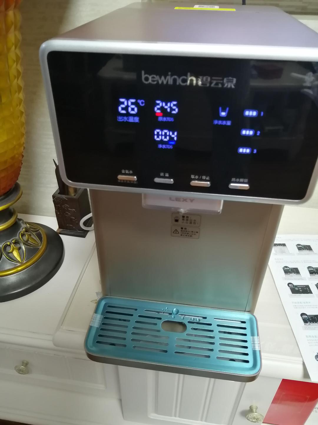 净水机收到了,迫不及待地试了一下效果,出来的水口感非常好,和一般的净水机出来的水口感完全不一样,口感非常好,甜甜的,比矿泉水的口感都好很多呢,赞!