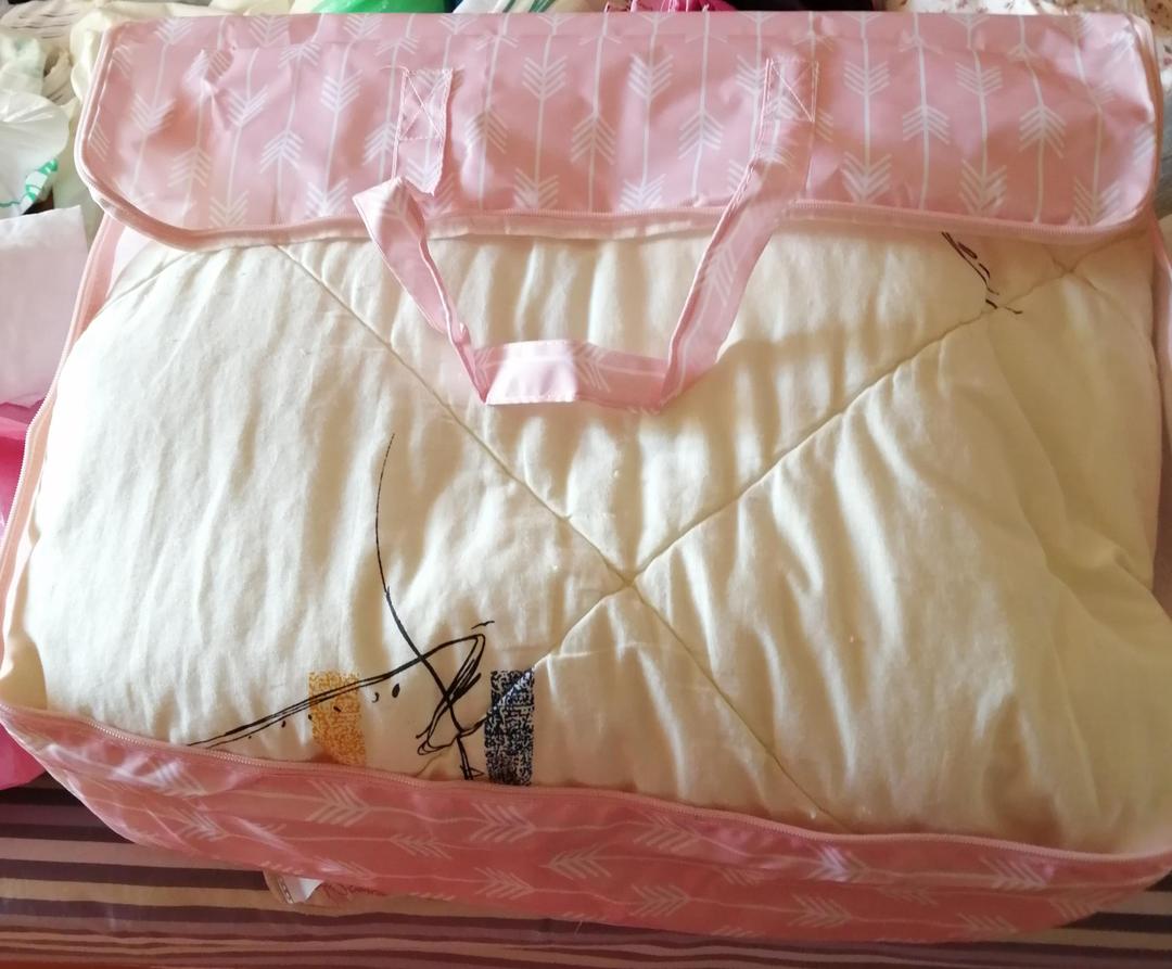 收到货,很满意的一次购物,做工好,物流快。一个包能放进两个薄被或是放一个六斤重,处加一个被罩共七斤的被子。很赞,会推荐朋友购买的。前两张图片是六斤重的被子,后两张图片是两个薄被。