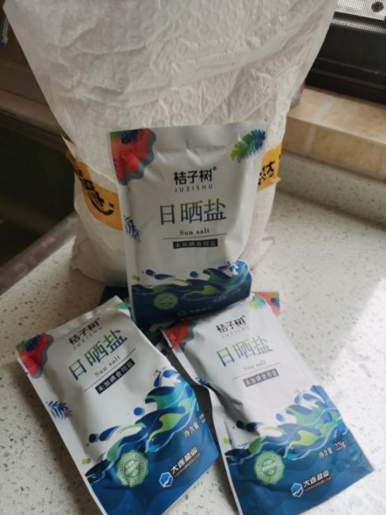 购买的桔子树日晒盐收到了,这款盐的品质非常好,更主要是这款盐不含亚铁氰化钾,亚铁氰化钾有毒吃多了要命的。