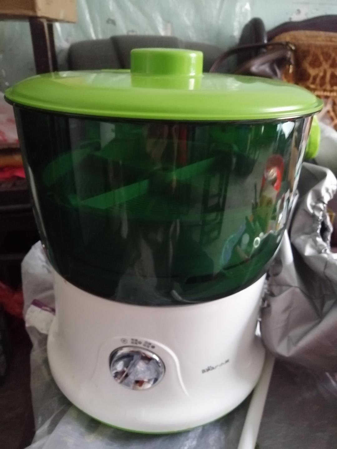 小熊豆芽机很早就收到了,只是我不在家,现在才回来,回来立马就做上了。下图是我升的绿豆芽,绿豆芽3~4天就升好了,没有添加剂,没有激素,纯绿色食品。豆芽机好用,唯一不足的是通电后没有指示灯,我得等在旁边听到机子在抽水才知机器正常工作,希望厂家能改进一下。