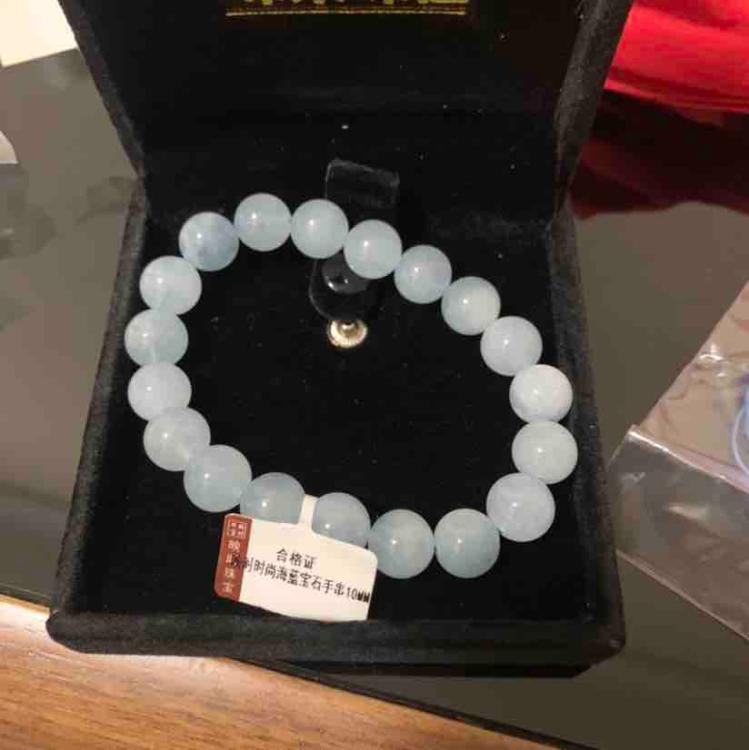 这款海蓝宝石手串太漂亮了,带在手上马上就不一样了,女同胞人人都喜欢。