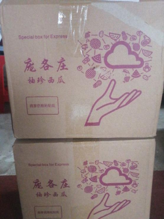 庞各庄西瓜特别新鲜多汁很甜脆皮薄肉多籽子快递服务态度好一共四个瓜完好无损