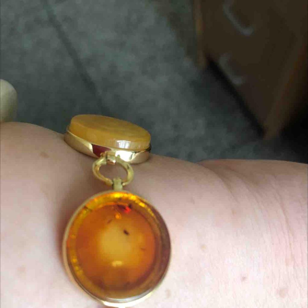 惊喜多多,欧式镶嵌就是时尚洋气新颖,6个蜜蜡和花珀圆盘排列组合完美,赞赞赞。谢谢李姐赠的蜜蜡耳钉,还有订单奖。