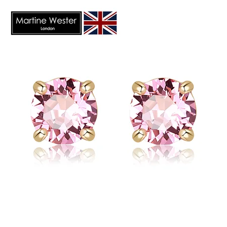 玛汀薇思 纯银S925镀玫瑰金浅玫红施华洛世奇水晶耳钉·浅玫红