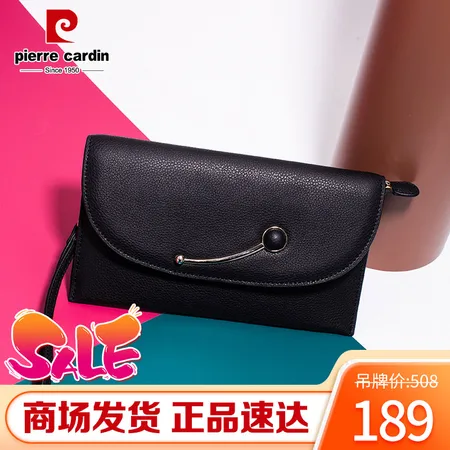 皮尔卡丹女士长款使用牛皮手拿包有手腕带,精美三色可选,多卡位大容量,满足日常所需!