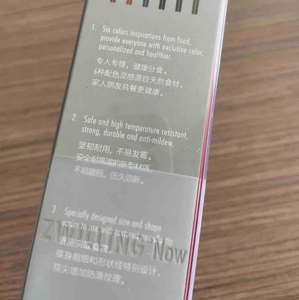 家里的竹筷子尾部发霉了,刚好在直播间看到这套筷子,马上就下单了,吃饭用的东西,抗菌健康很重要,双立人的品质信得过,拿到手以后十分惊喜,看着很有质感,拿起来重量很轻,连筷子互相撞击的声音都很清脆悦耳,很棒,支持惠买,总能买到惊喜,五星好评