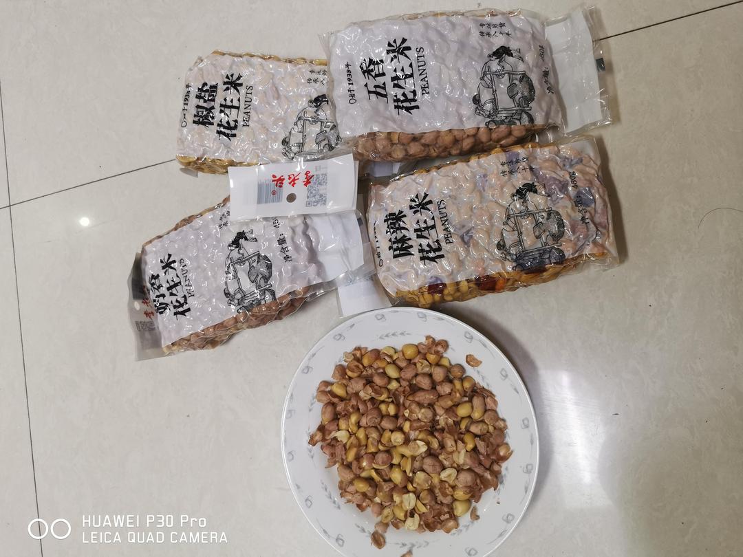 抱着试试看的心理,4种口味各要了一袋儿,先拆开一个五香花生米吃,放到嘴里很脆,味道也很好。不错,值得信赖。