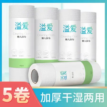 5卷*溢爱50片六角花纹点断式白色懒人抹布250*250绿款·白色