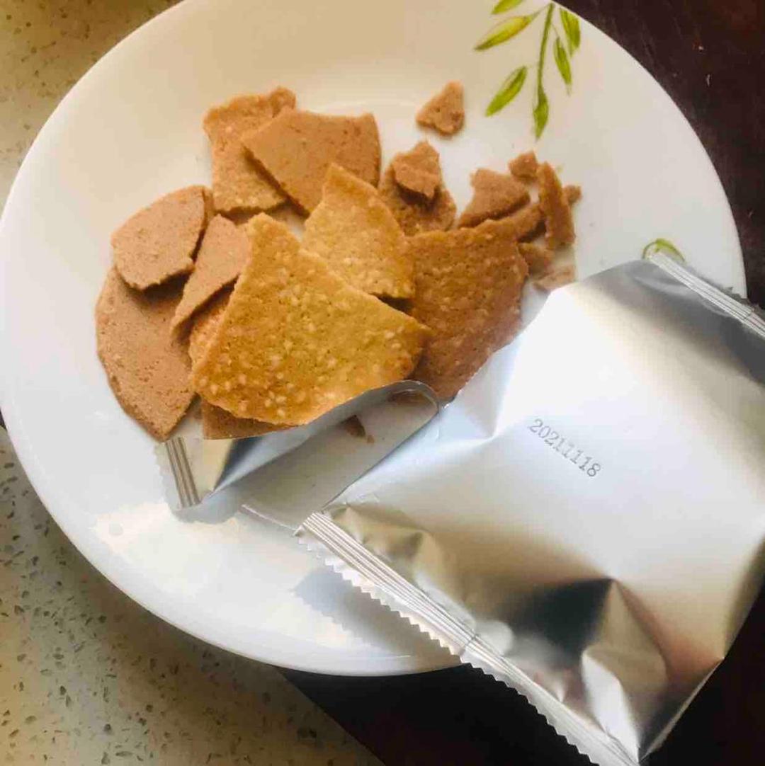 山药芝麻脆片口感又硬又脆,味道挺甜,有点芝麻香味。商品包装简单致使饼干很碎,不知道发货前就这样还是运输途中造成的。