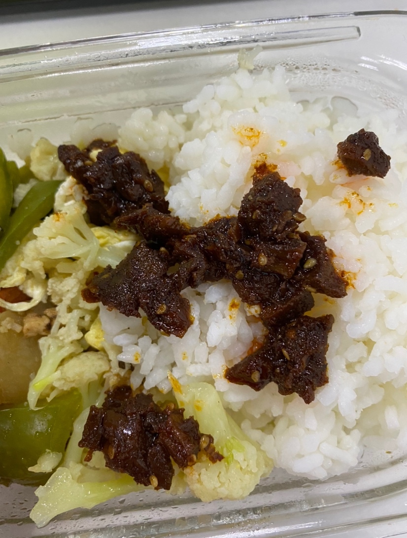 这个香菇酱和牛肉酱必须安利一下,我抱抱着试试看的态度买的都是小包装的,这样方便放在公司。香菇酱和牛肉酱都是1袋12小包。中午我自己带饭,一样打开一包,蘑菇酱和牛肉酱都不咸,味道正好,可以拌在米饭里。蘑菇酱可以看到大粒的香菇,吃到嘴里有香菇的口感。牛肉酱是一丝一丝的,很多牛肉丝,而且肉质很好,不会柴。这两种拌在米粉里都超级好吃。决定买大包装放在家里,真的是老少皆宜