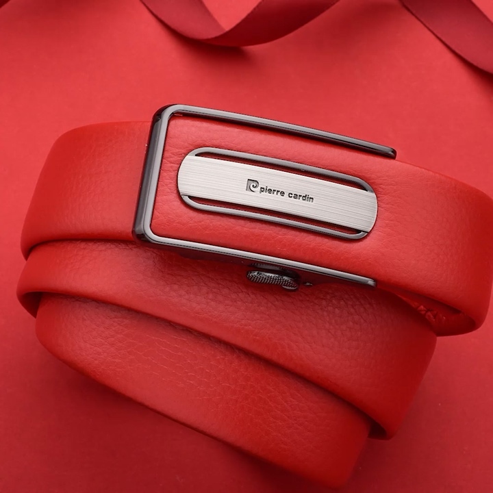 皮尔卡丹男士本命年简约大方牛皮自动扣盒装腰带·红色