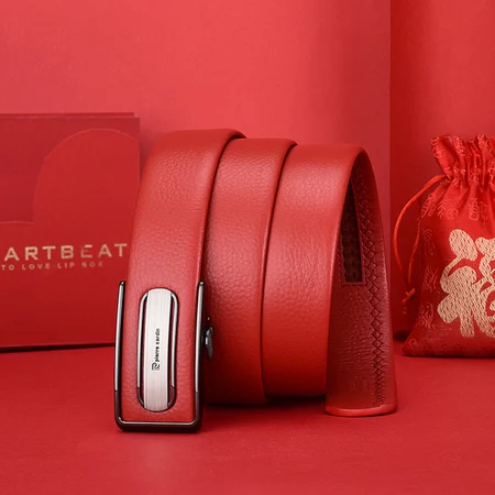 皮尔卡丹男士本命年头层牛皮自动扣红腰带,精致做工,简约大方,还有礼盒礼袋包装,送人自用都不错!