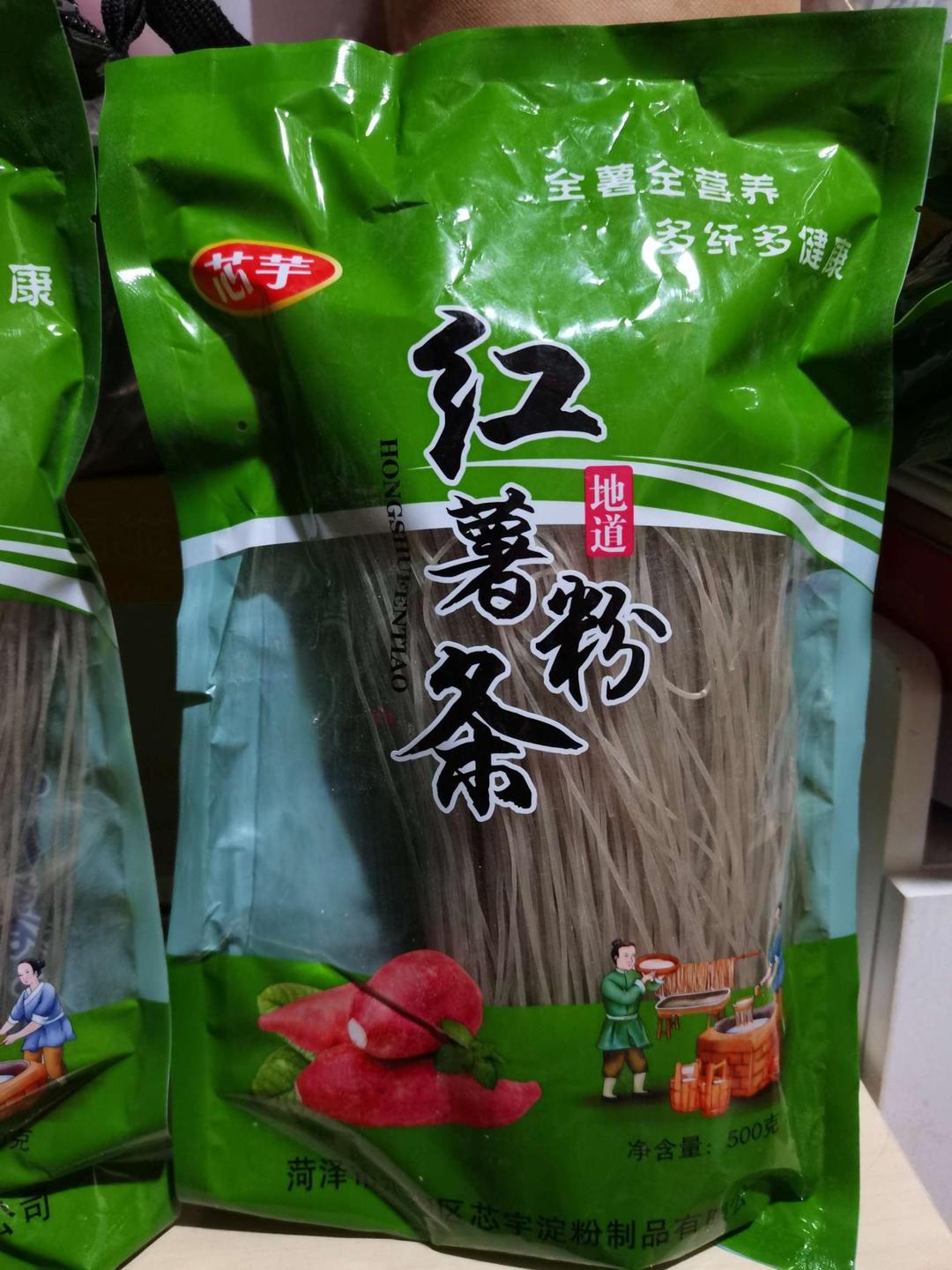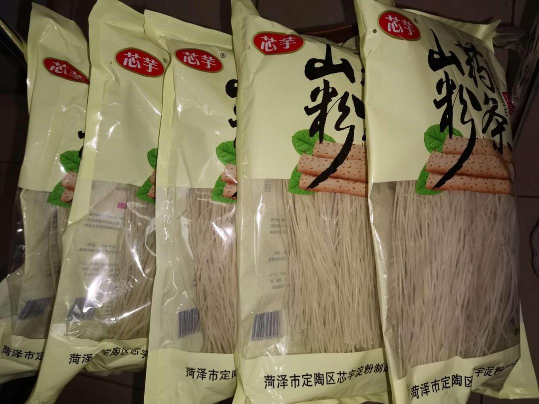产品刚刚生产出来的很满意,非常棒的一次购物,5斤山药粉条5大包和5斤红薯粉条5大包,包装袋设计亮丽吸引眼球。食用后好吃还会再来!