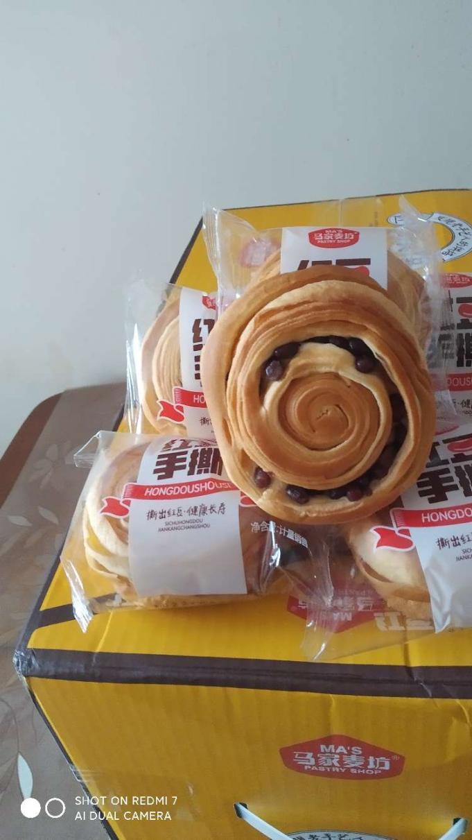 面包収到了,满满的俩箱,外包装很漂亮,打开里面的面包超级棒,每个都有独立的小包装,里面的面包味道非常好吃,软软糯糯甜度适中,很适合老人和小孩吃,吃完还要回购。