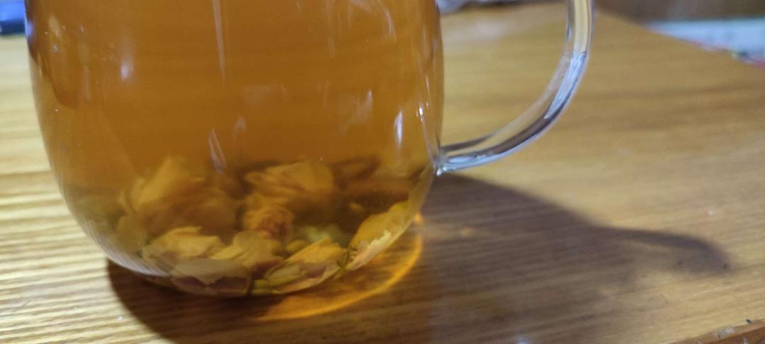 重瓣玫瑰,花朵饱满、颜色暗红、没有异味、有淡淡的花香、汤清、微暗红、可口非常好喝。