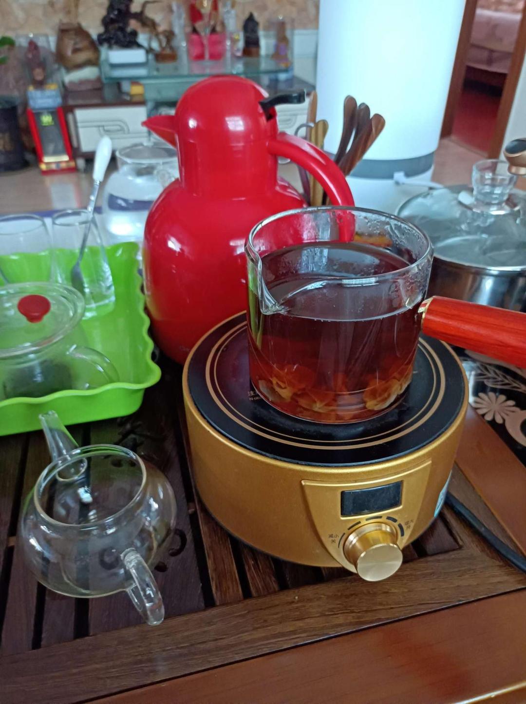 ,这个茶具,什么样的茶都能泡,白茶,普洱茶,红茶,绿茶,观音茶都能用,方便又实用,刚刚煮的普洱加桂圆,太好了,非常满意