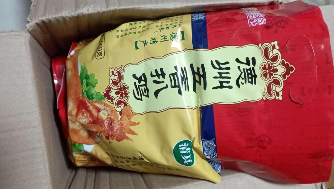 德州五香扒鸡收到,真空包装很好!鸡肉新鲜味香好吃!特价购买很便宜!真好!
