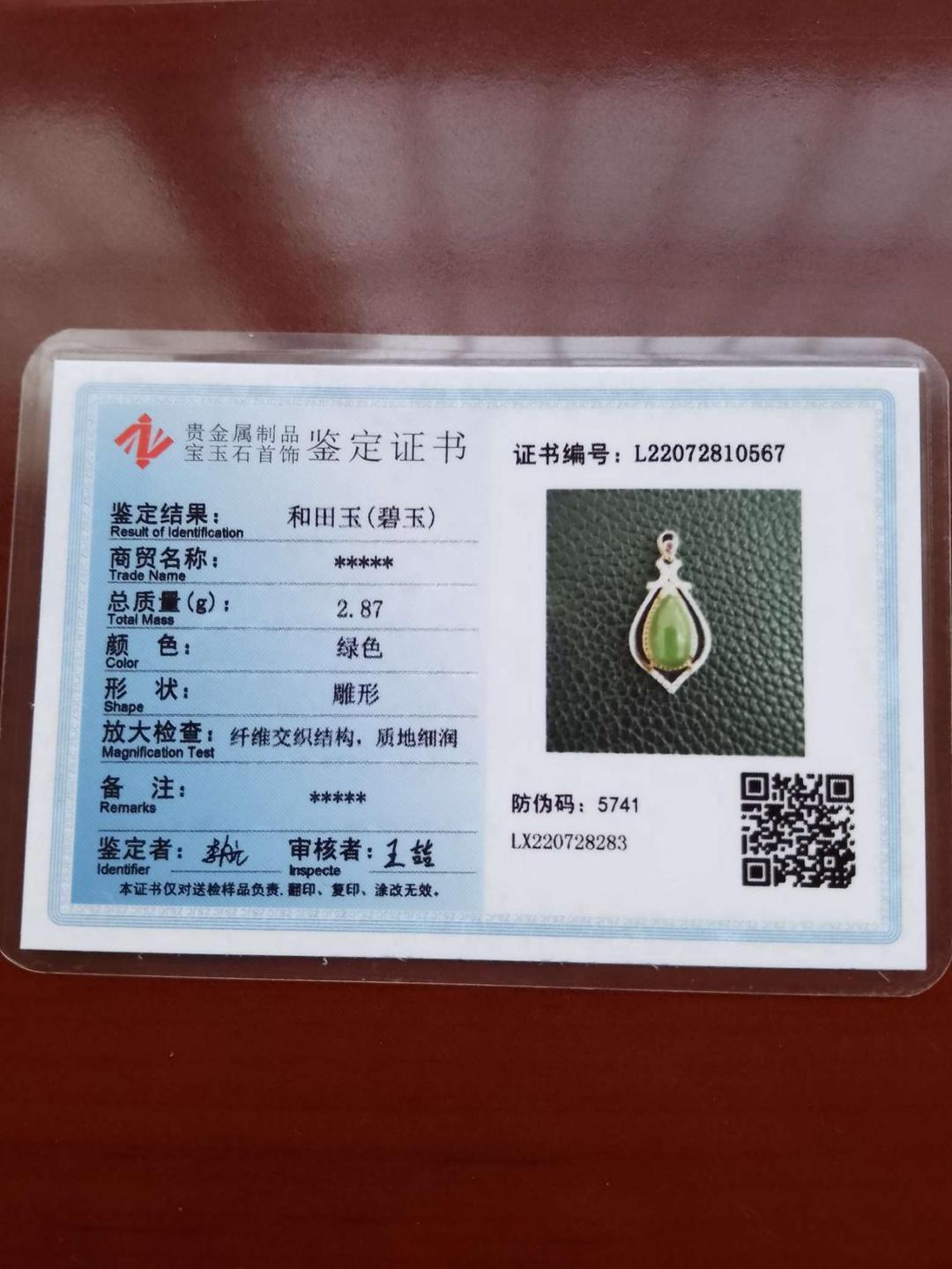 俄料七号坑碧玉吊坠收到了,喜欢!希望若干年后更感谢鼎云轩,升值!