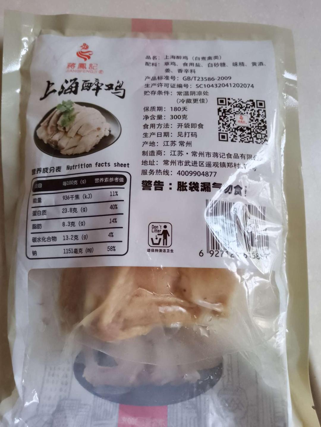 蒋凤记一上海醉鸡收到了,今天吃了,味道却是很好,又吃到了上海的风味。