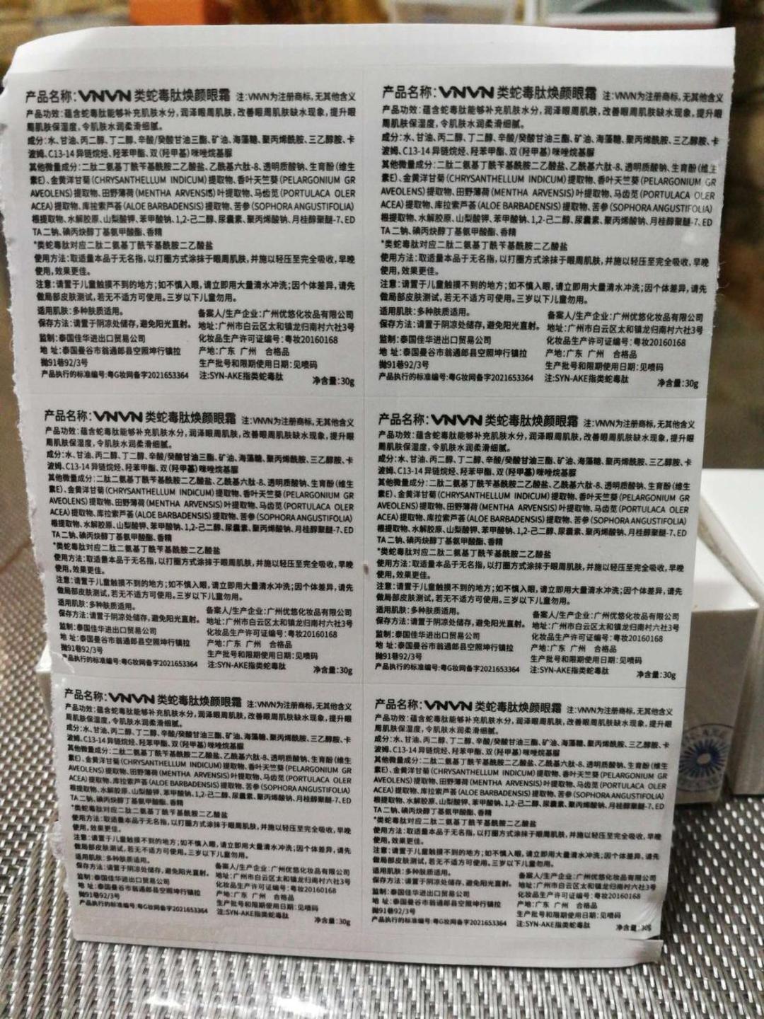 泰国VNVN类蛇毒肽修护眼霜【淡化细纹 提拉紧致】30g*5个装·【淡化细纹 提拉紧致】