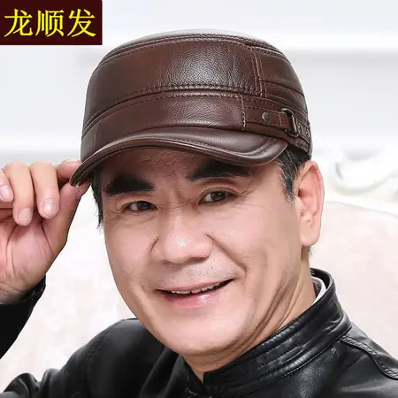 2022新款男士头层牛皮洋气平顶帽·棕色