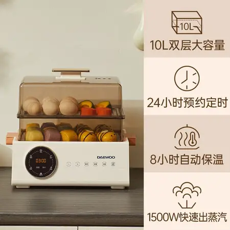 韩国大宇(DAEWOO)电蒸锅多功能家用智能蒸煮炖一体二层·米白色