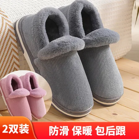 【2双装/加绒包跟】坑条绒防滑男女拖鞋·紫色+灰色